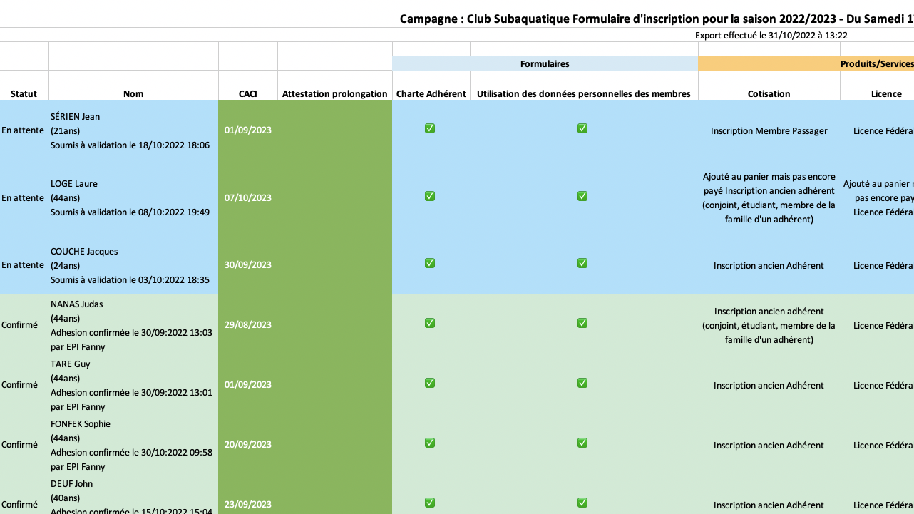 Enregistrement du Pass sanitaire dans le profil du membre, groupement des souscriptions et corrections ...